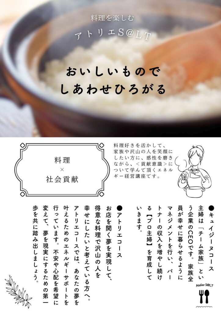 ①お料理の才能を使ってお仕事をされたい方に向けた<アトリエコース>