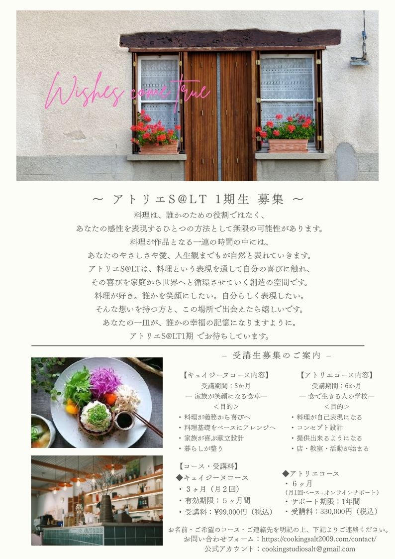 料理教室S@LTは2026年春を迎え、17年続けさせて頂くことが出来ました。
