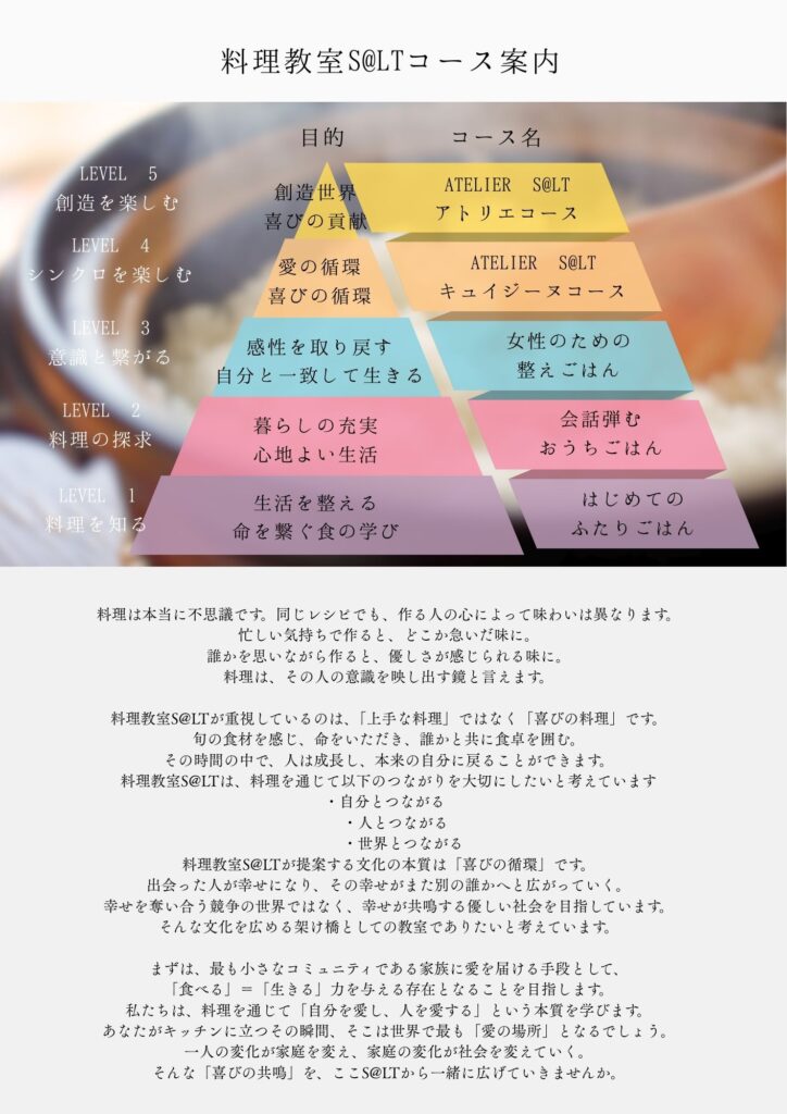 E:Atelier S@LT あなたの感性で家族をそして世界を笑顔にする料理のプロを育てる『アトリエS@LT』