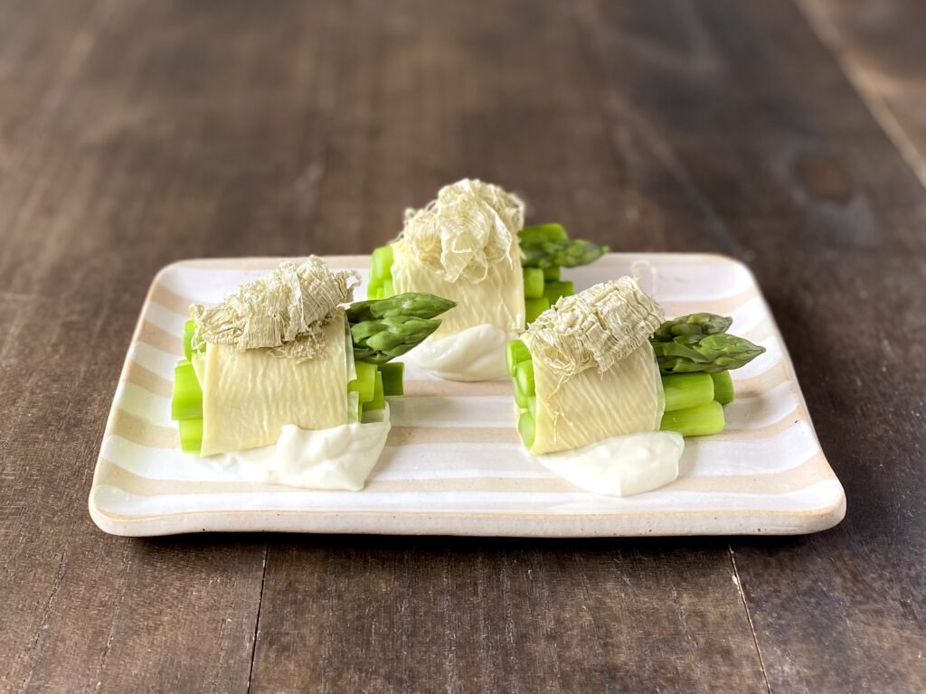 ◉ アスパラの湯葉巻き 〜山葵ソース〜