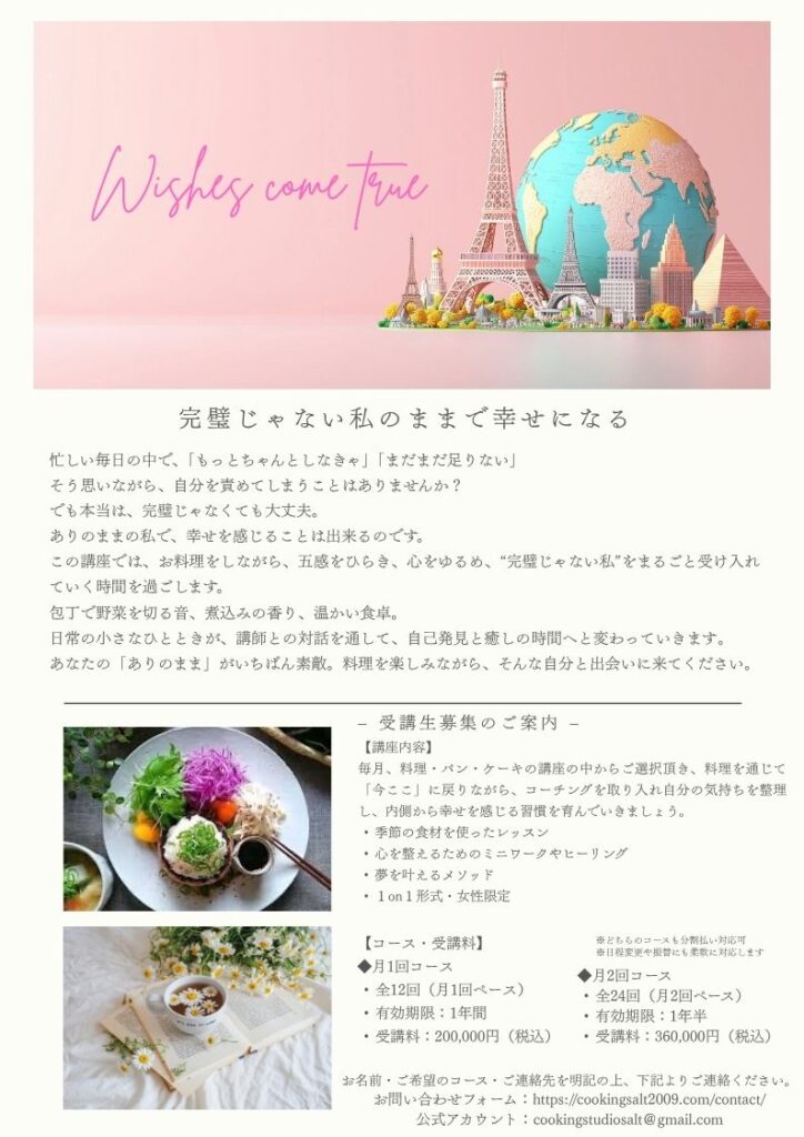 S:料理×コーチング:ありのままの自分で『願いを叶える料理教室』